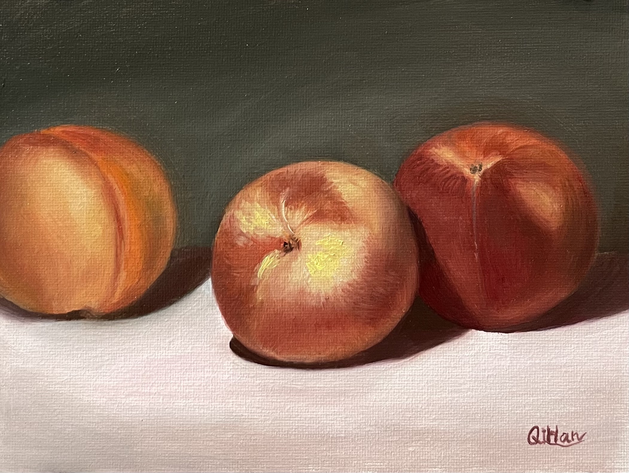Qi Han is an oil and watercolor painter based in the vibrant Bay Area of California, where she finds endless inspiration in the region’s natural beauty and diversity. Fascinated by the way light transforms the world around her, Qi captures the subtle moods of her subjects—whether it’s a quiet still life, a sunlit landscape, or the unique character of a person in her portraits. Her work, rooted in a love for detail and atmosphere, is a constant exploration of bringing beauty, depth, and luminosity to each piece she creates.